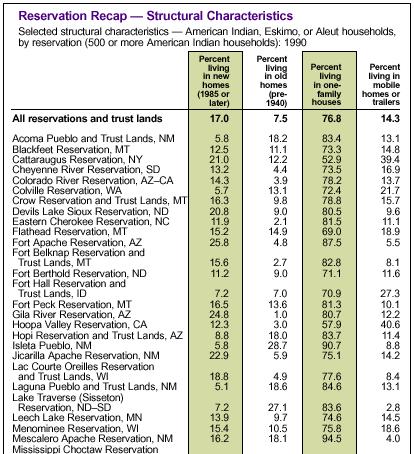 One example was the Isleta Pueblo,NM, where over one-quarter of American Indian households lived in such homes.